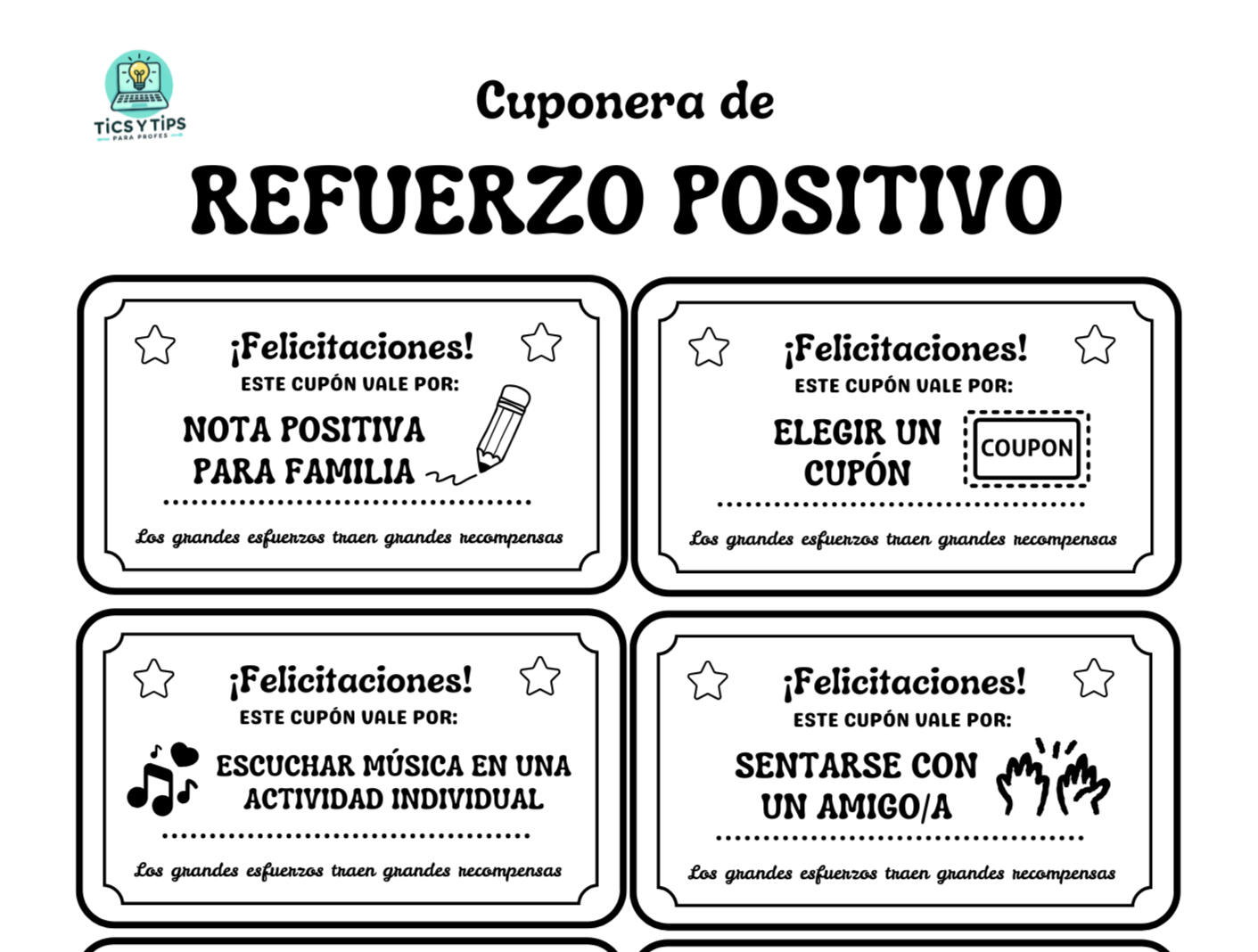 8 cupones de refuerzo positivo imprimibles en blanco y negro y a color